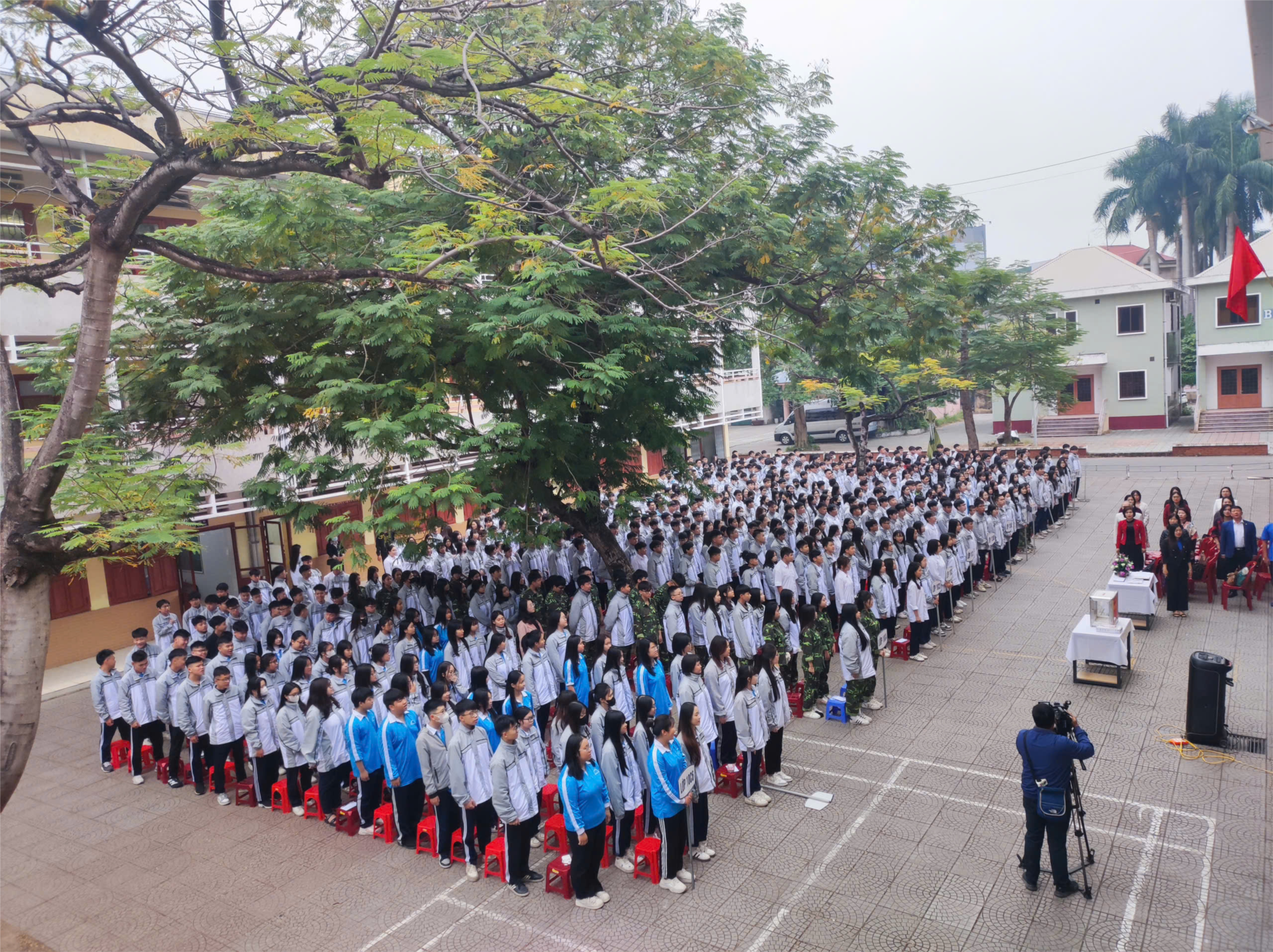 Sáng ngày 01/12/2025, trong không khí trang nghiêm của những ngày đầu tháng 12, thầy và trò Trường THPT Marie Curie Hải Phòng đã long trọng tổ chức Lễ Chào cờ đầu tháng – một hoạt động thường xuyên nhưng luôn chứa đựng ý nghĩa lớn trong việc giáo dục truyền thống, định hướng phong trào và khơi dậy tinh thần trách nhiệm ở mỗi học sinh Marie Curie.